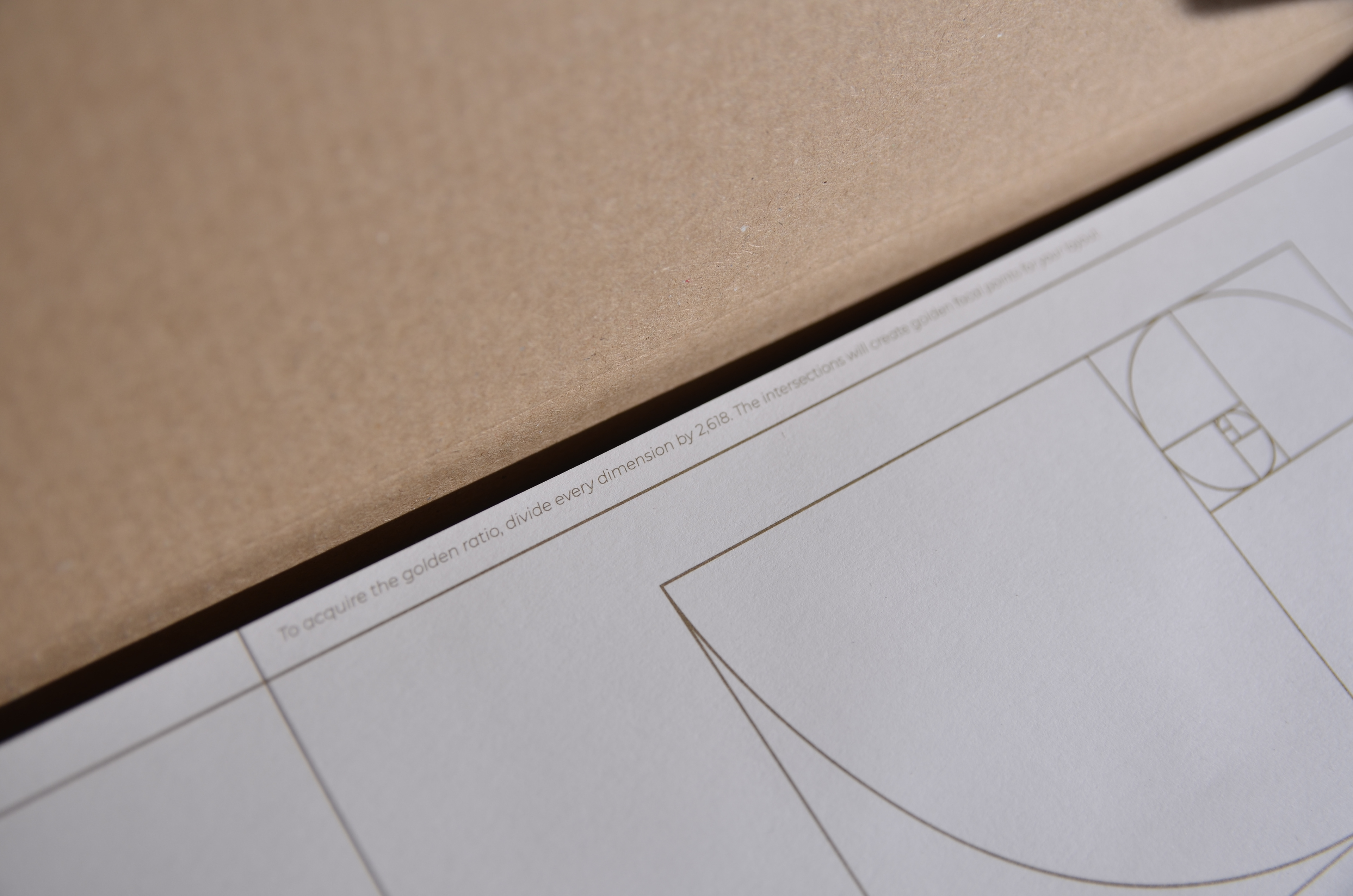 Na marginesie jest załączona instrukcja w jaki sposób podzielić wymiary by osiągnąć złote proporcje pomiędzy poszczególnymi częściami kompozycji.